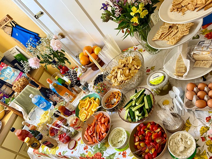 However, this year I wanted to challenge this pattern. My 28th year was a grating descent/ascent into solitude, featuring upheavals that tested my resilience and left me like worn elastic. The less-than-jubilant times we’re living in on a national and global level did give me pause when thinking about celebrating myself. Being with friends I love most on the day of my actual birth did feel like the move though, and with it falling on a Wednesday, I felt strongly about something post-work in the evening. Enter: coastal birthday dinner house party. Everyone was invited to bring a tinned seafood of their choice and I provided the accompaniments. There was also an epic ice cream cake. As it has been grossly hot and humid in Detroit, this was a brilliant choice.
